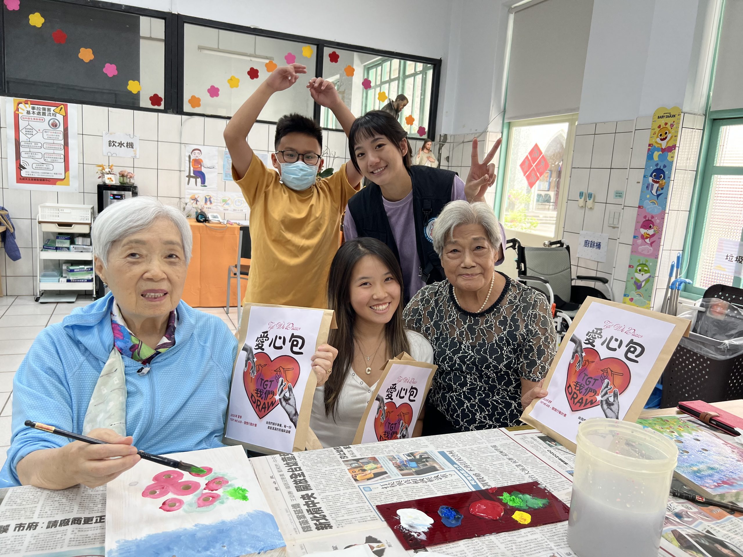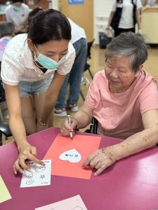 今年由六位2006年出生的資深學長姐領軍,帶領十五位高一高二新生,一起走進長輩們的1930年代,畫畫、聊天、律動、吃飯陪伴,從早上到下午的整天陪伴。雖然語言有限,但眼神、笑容、牽手、擁抱,早已跨越所有隔閡。